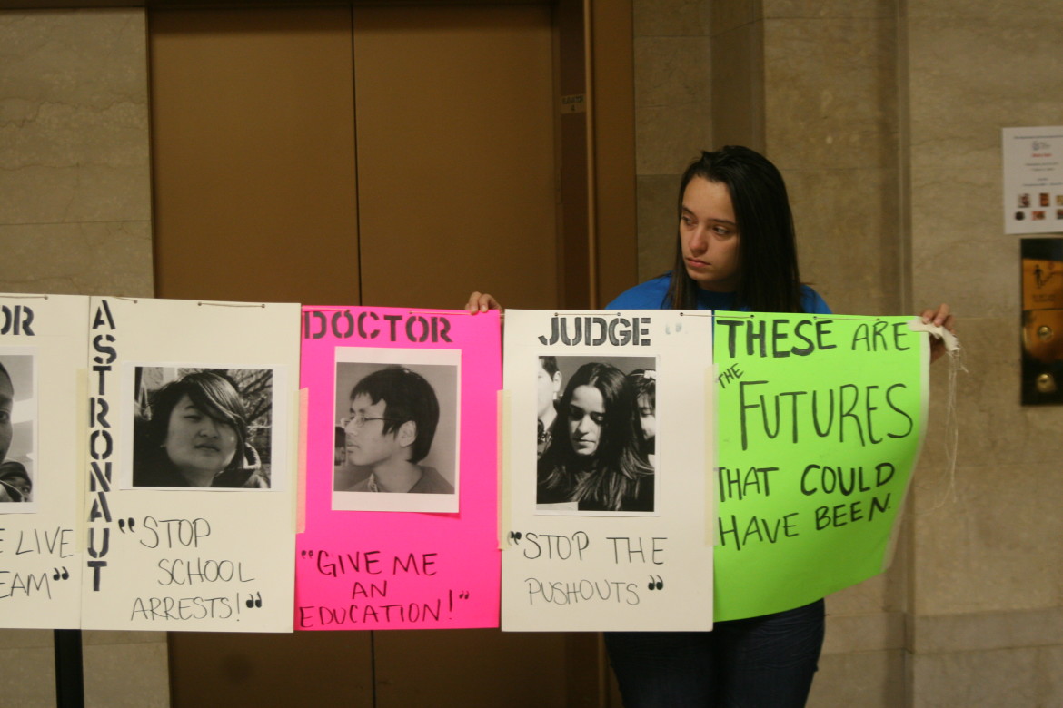 Roosevelt High School student Angelique Wade said that when she was an 8th-grade student at ASPIRA Haugan Middle School, she was arrested and received a 10-day suspension for starting a fight – the first time she had gotten in trouble, she said.